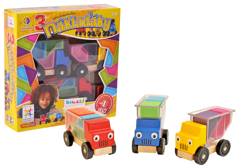 Úloha: naložiť náklad rôznych tvarov a farieb do vlečky nákladiakov podľa zadaní