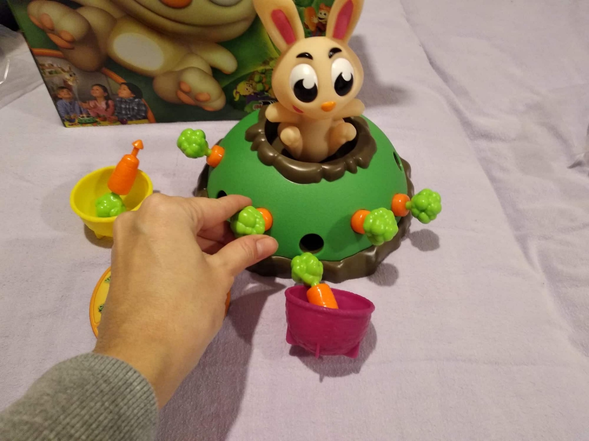Úloha: uchmatnúť zajacovi čo najviac mrkvičiek. O počte, ktoré hráč môže zobrať, rozhoduje losovacie koleso. Pozor, ale na zajaca! Pri vytiahnutí mrkvičky môže vyskočiť z jamky, a ak chcete získať dve mrkvičky od súperov, nesmiete zaváhať a musíte ho chytiť ako prví.
